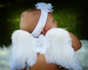 Angel wings perfect for infants and newborns. A great photo prop or even makes for a really cute costume accent. we recommend adding a sequin centered white flower to the center of the wings.