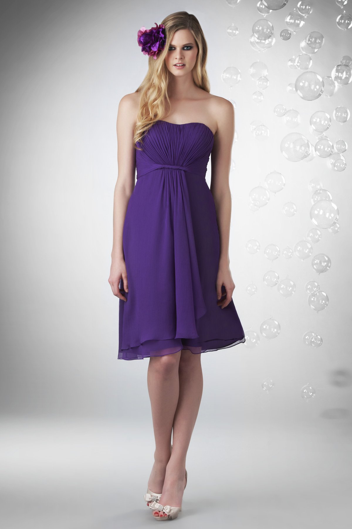 Strapless neckline with pleats, twist in the center front of bust. Short Dress.