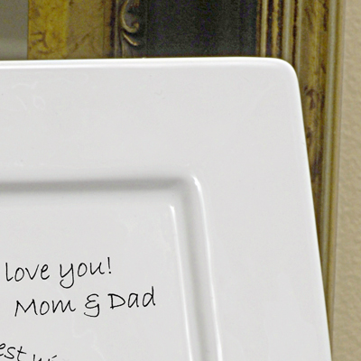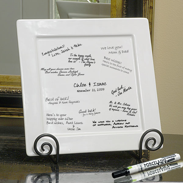 Purchase includes: porcelain platter, black fine point porcelain marker, decorative easel and complete instructions for how to preserve your signatures and use for years to come.